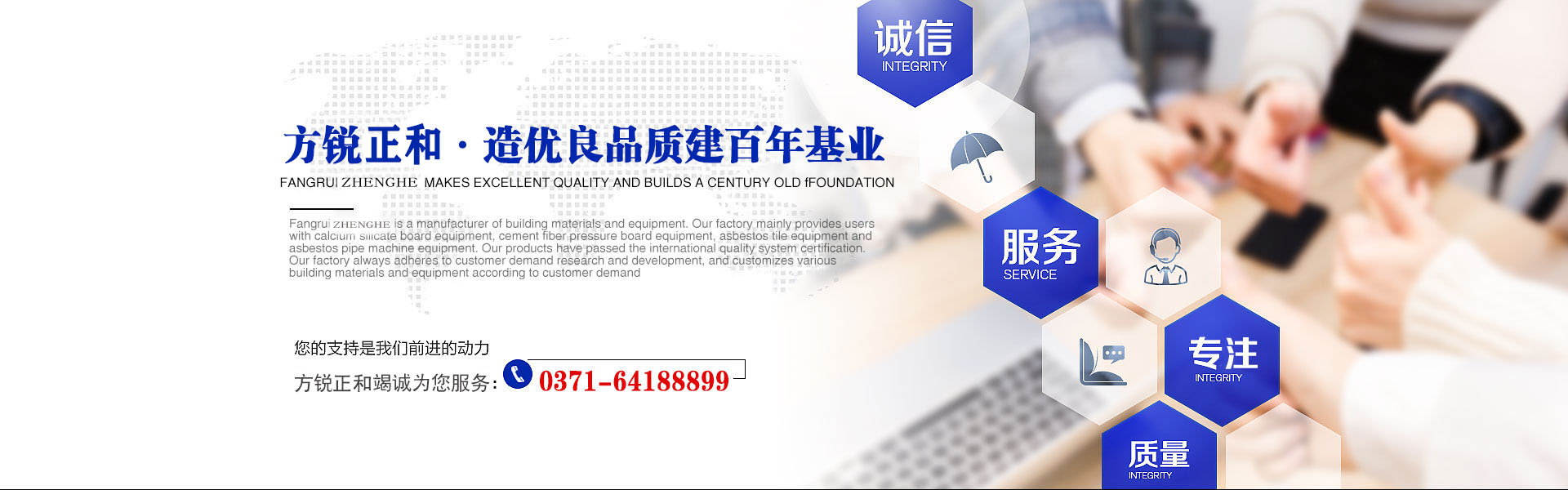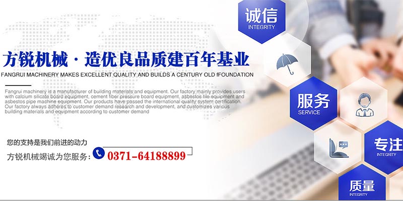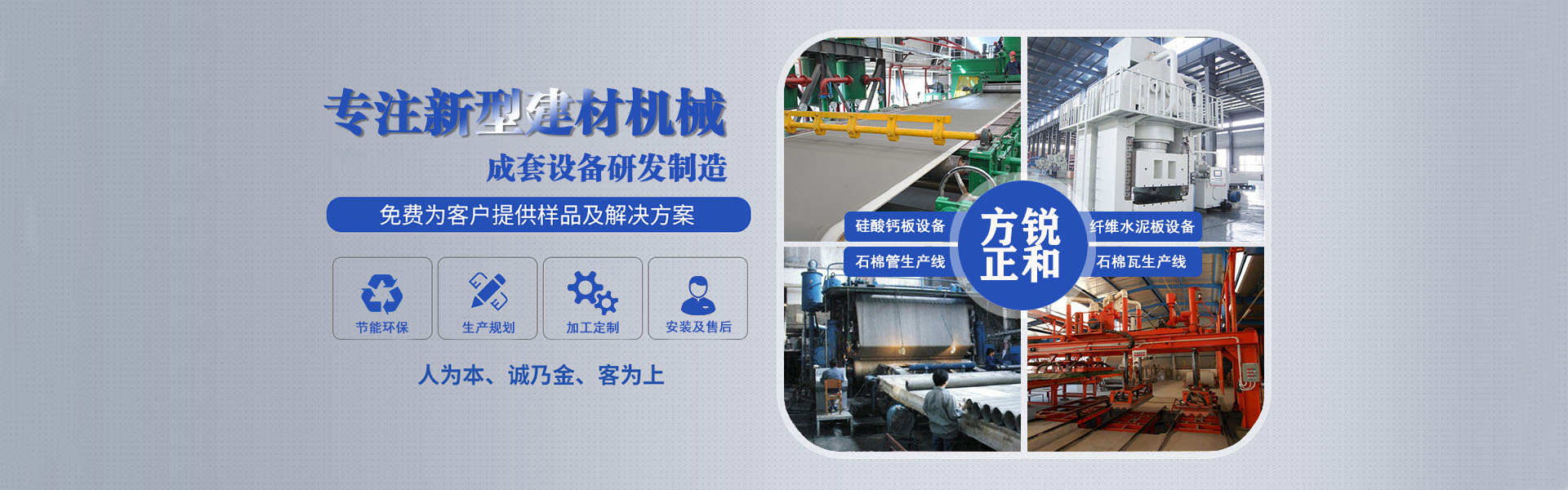 鄭州方銳正和機械制造有限公司在硅酸鈣板設備、水泥纖維壓力板設備、石棉瓦設備和石棉管設備等新型建材領域有豐富的經驗成熟的工藝,公司位于河南省鄭州市鞏義市芝田鎮,多年來,公司匯集了一大批銳意進取并代表著行業水平的管理人員。公司非常重視技術交流與合作,引進了發達的好技術和工藝,在技術本土化的基礎上,我們一直在理性的探索,不斷創新,開發適合客戶需求的新產品。公司秉承以“以人才為根本,以市場為導向,以科技為基礎,以產業為標準、以質量為保證、以世界為目標?!钡慕洜I方針力求的設備服務于社會而努力。我公司經過多年不斷的努力,發展壯大,成為國內設備廠家。